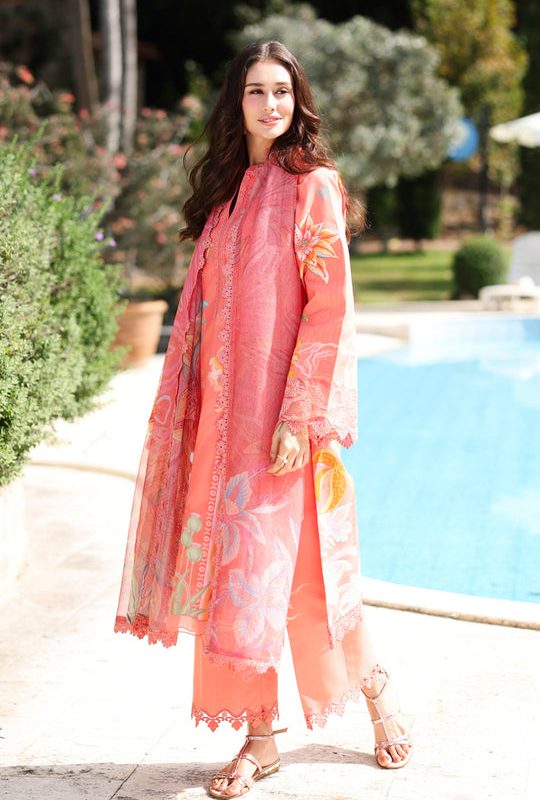 Dyed Organza Embroidered Neck 01 Piece