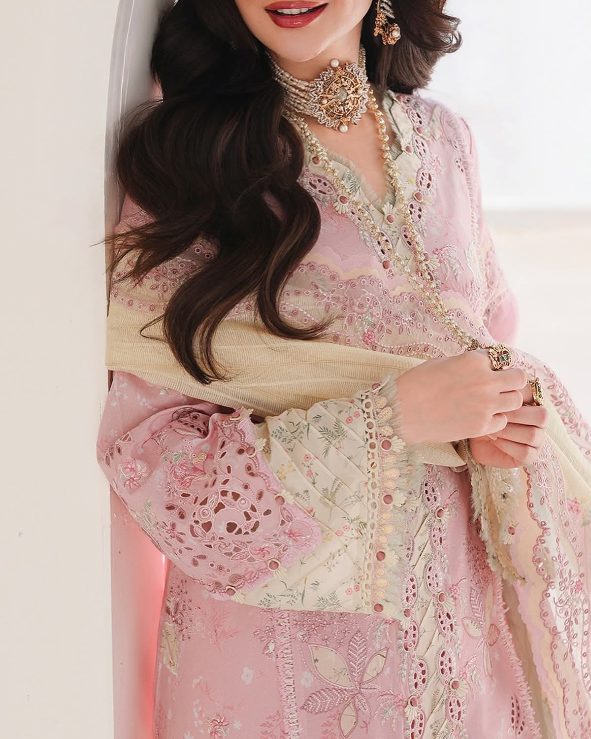 Digital Printed Laser Cut & Chikankari Embroidered Left Panel