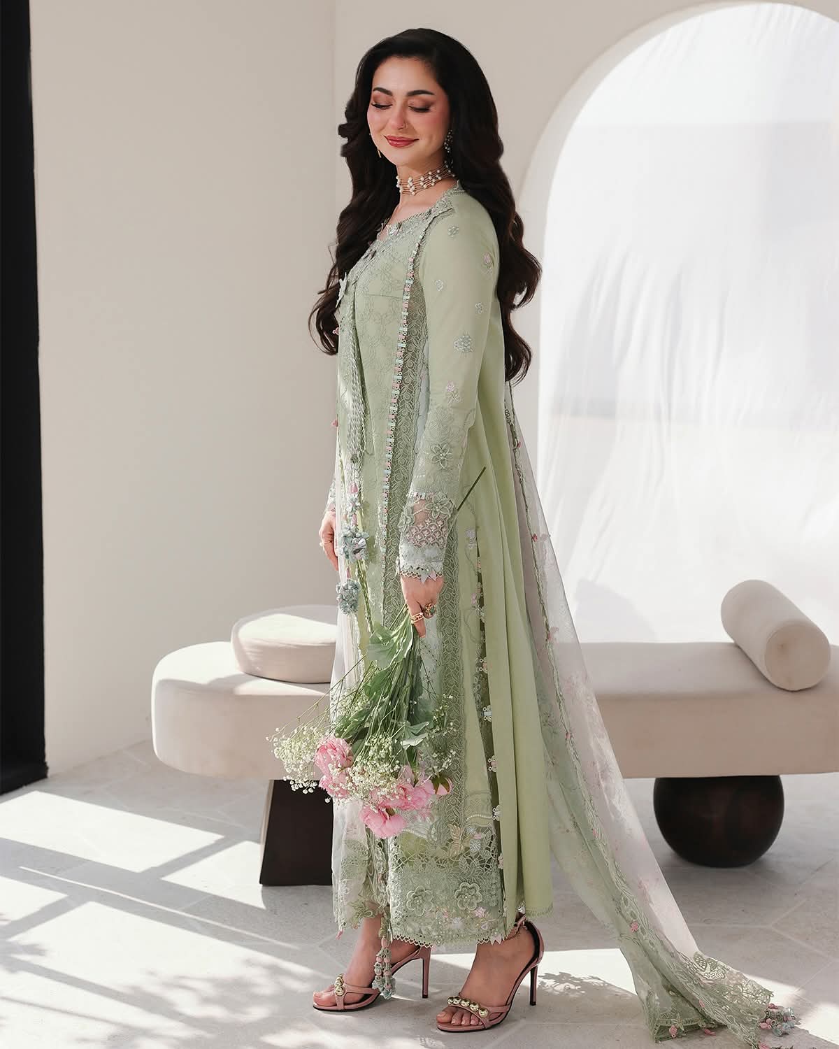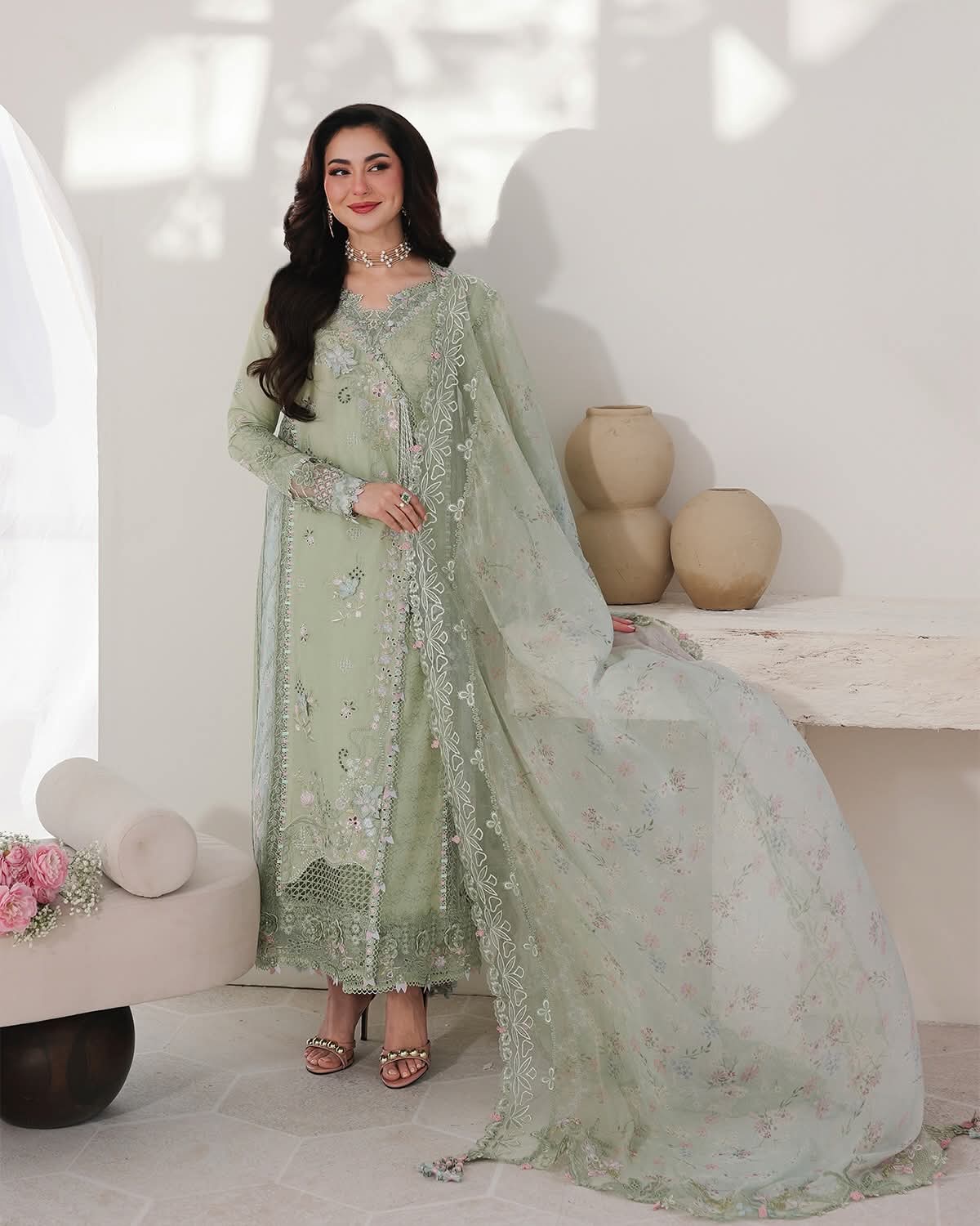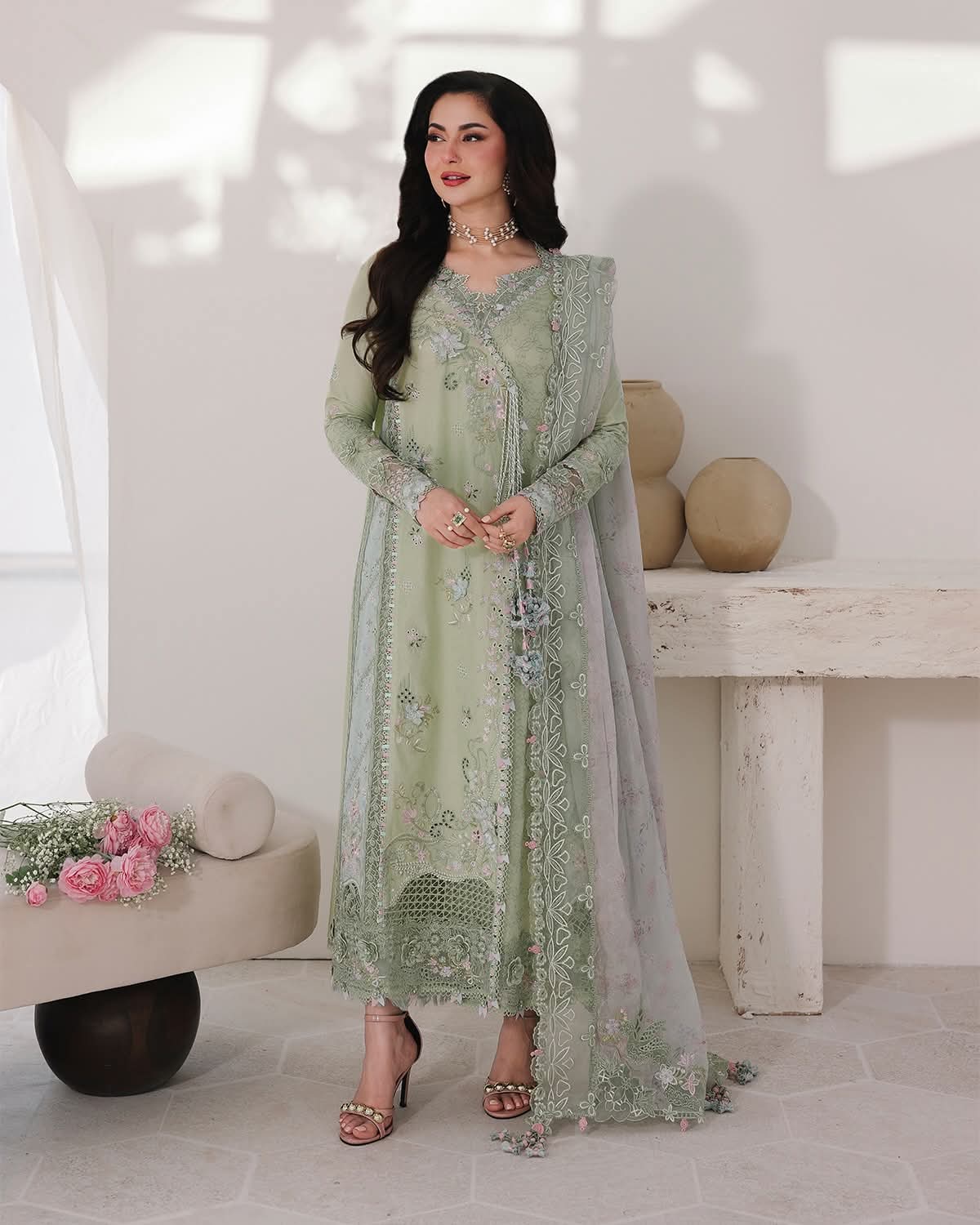 Chikankari Embroidered Dupatta Pallu